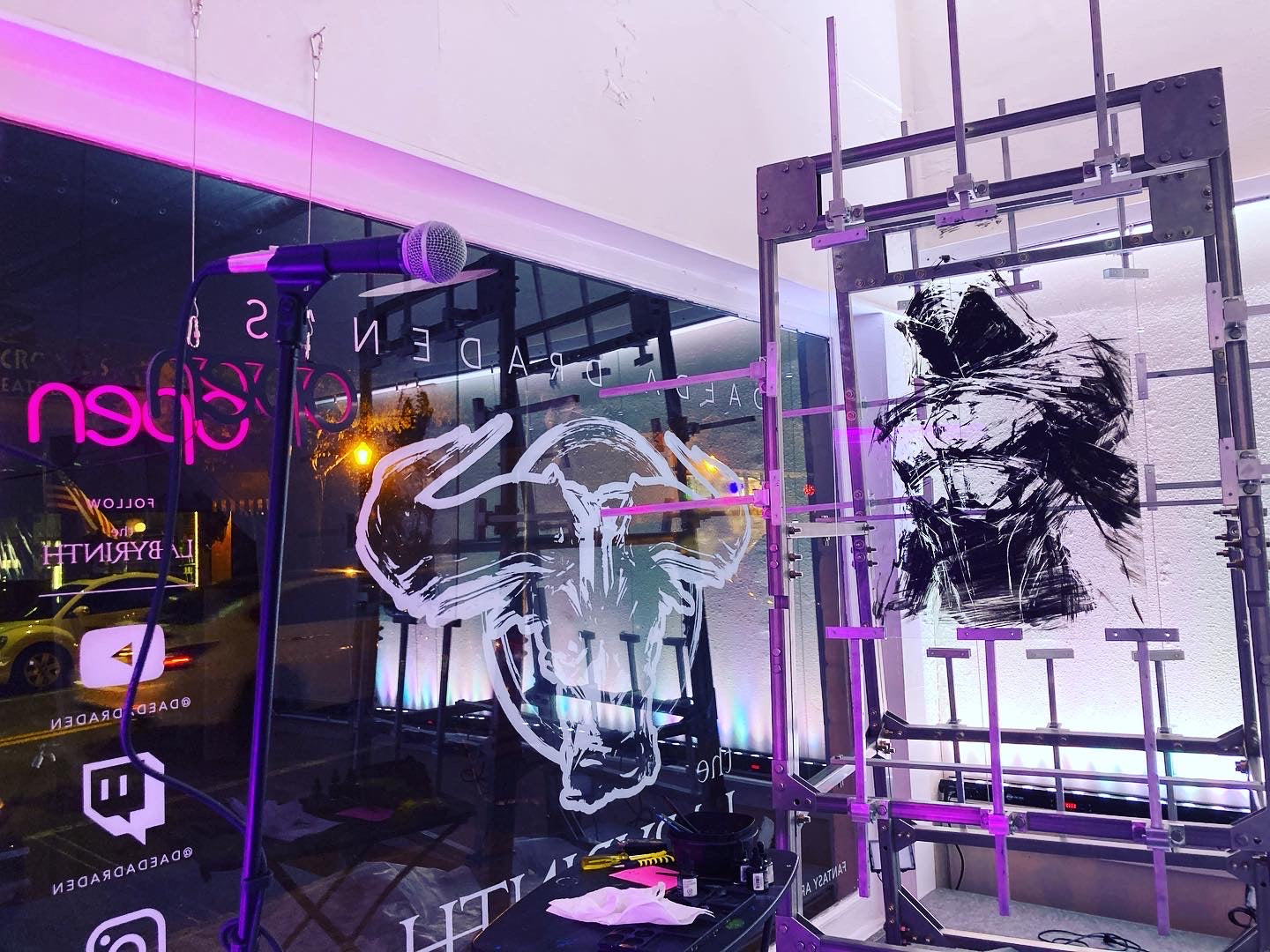 Original ArtCheck out The Labyrinth online Gallery for our selection of original paintings. If you have an idea for a custom original painting you can set up a phone call with Daeda and collaborate with him on a custom commission. All original paintings are on glass and come with tracks and cables to suspend that glass the way we display Daeda's originals at The Labyrinth.