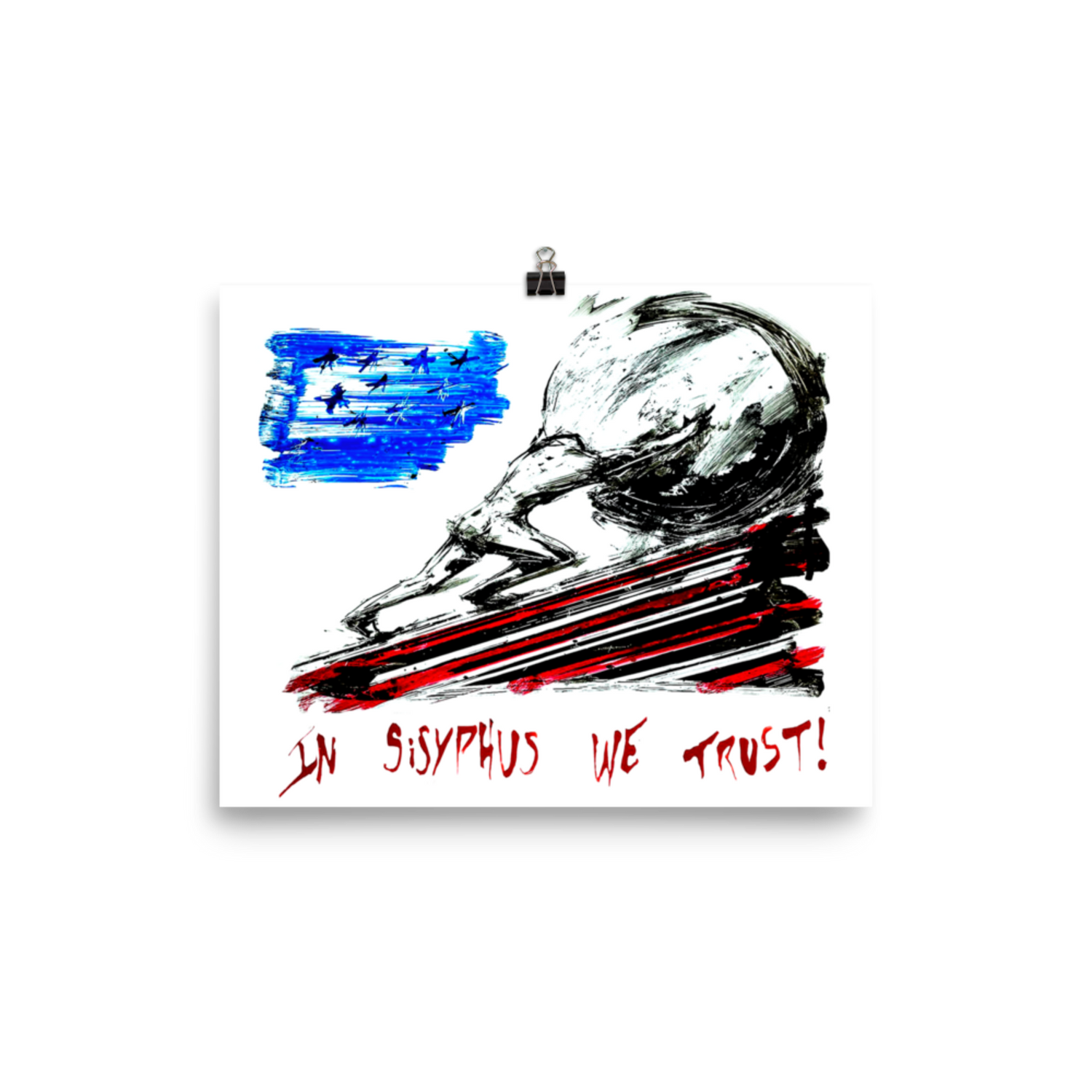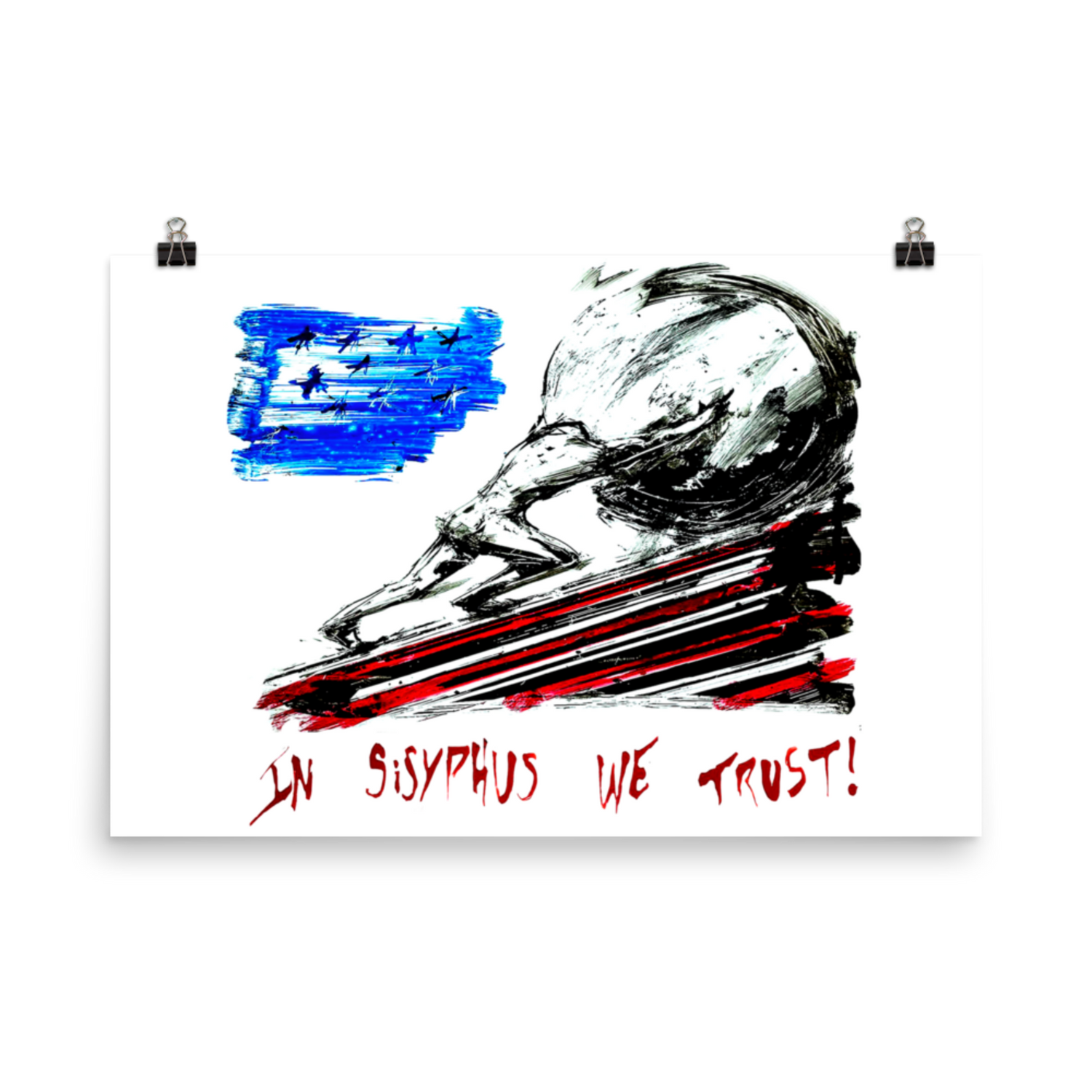 Print of the graffiti In Sisyphus We Trust from the Florida Man 2054 Graphic Novel.